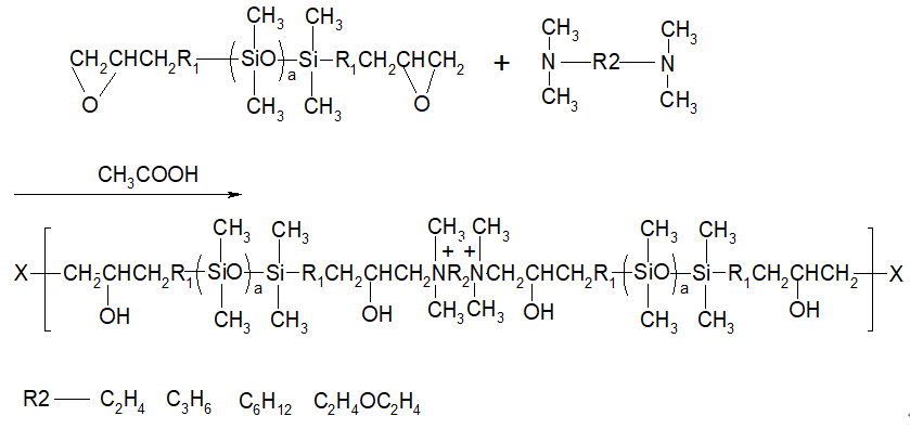 (1) Four hydrophilic block silicone oils were obtained by reacting four common tertiary amines, tetramethylethylenediamine, tetramethylpropanediamine, tetramethylhexanediamine and bis ( dimethylaminoethyl ) ether, with epoxy-terminated silicone oil. These four hydrophilic softeners have excellent acid resistance, alkali resistance and centrifugal stability.