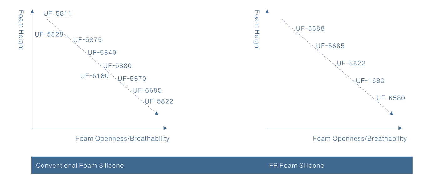 | UF-5811 | H | ● | High efficiency silicone for very low to low density formulations | ||||