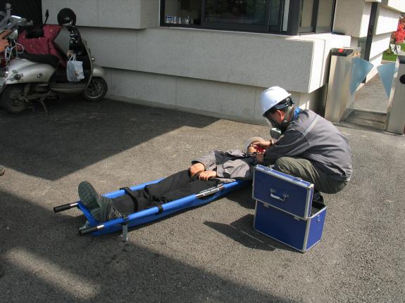 (现场模拟伤员救援)